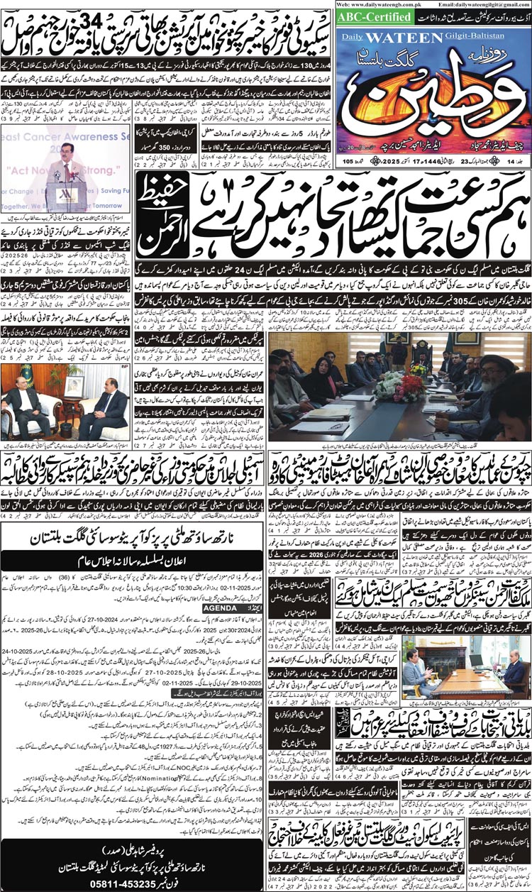 Daily Wateen Gilgit Baltistan Urdu Newspaper | Latest Pakistan News | Breaking News